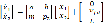 (1)This equation can be simplified as shown in (2), with the terms a = -1/RC, h=1/C, m=-1/L and p2 = -(rs + rM + rMed + rL)/L. The term x1 is the output voltage vc , and x2 is the current in the inductor iL :