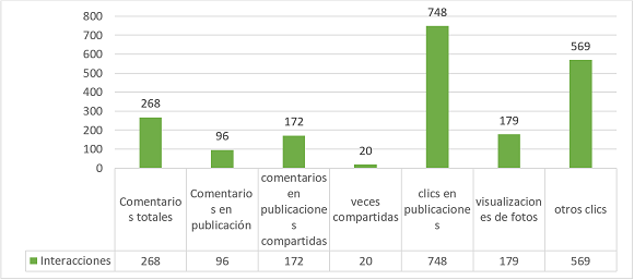Figura 14.Comentarios y clics obtenidos por las publicaciones de Facebook