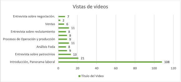 Después del envío de 160 enlaces con los videos del curso a egresados de la Facultad de Artes, se registraron vistas en los mismos las visualizaciones de cada video se muestran a continuación en la Figura 14.