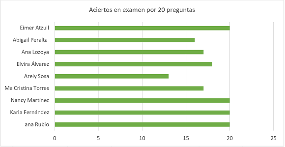 Figura 17. Aciertos en el examen de reconocimiento (participantes, comunicación personal, julio, 2017).