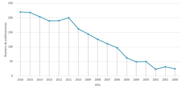Figura 2. Número de publicaciones anuales sobre modelos de innovación a partir del 2000