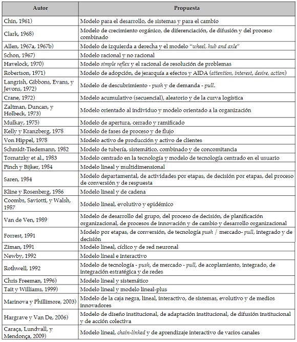 Tabla 1. Modelos de innovación propuestos