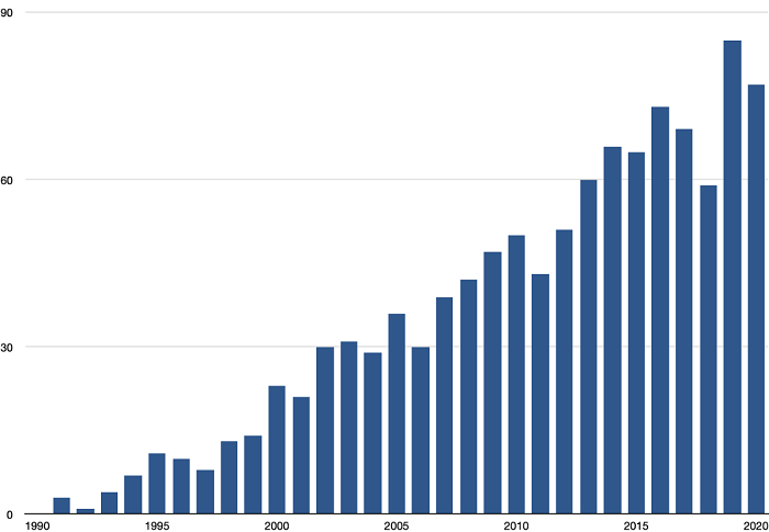 The data extracted from the Web of Science was then parsed on the open-access data analysis platform CorText Manager. Network mapping
