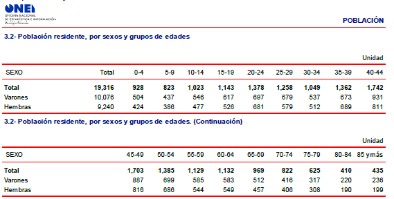 Se facilitan datos del comportamiento de las variables demográficas en censos de la ONEI, de informes de salud, del consejo de la administración.