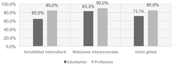 Figura 4. Relación profesores - estudiantes en competencias interculturales
