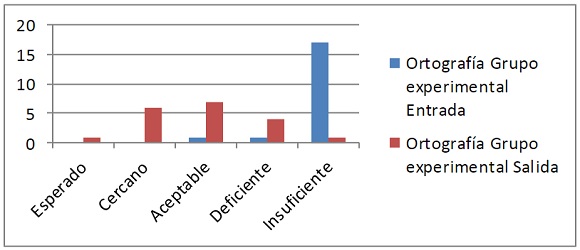 Figura 12. Comparación de la variable ortografía en el grupo Experimental