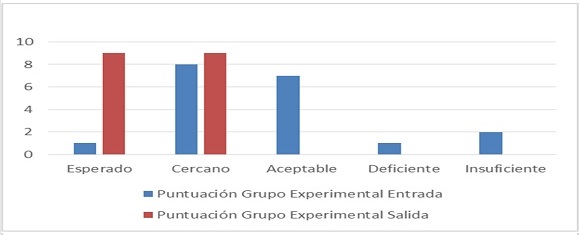 Figura 2. Resultado de las pruebas de entrada y salida del grupo Experimental
