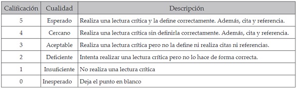 Tabla 6. Lineamientos de evaluación de la lectura crítica