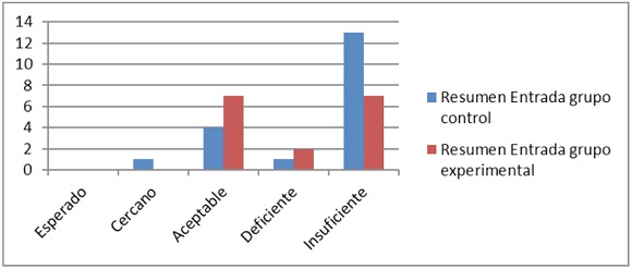 Figura 3. Comparación de la variable resumen en las pruebas de entrada de ambos grupos