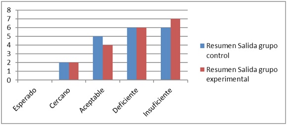 Figura 4. Comparación de la variable resumen en las pruebas de salida de ambos grupos
