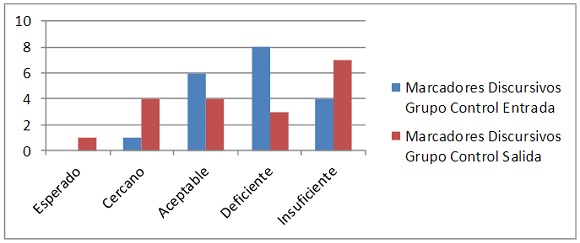 Figura 10. Comparación de la variable marcadores discursivos en el grupo Control